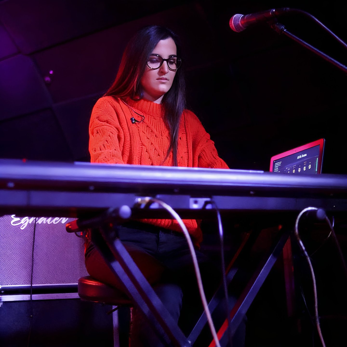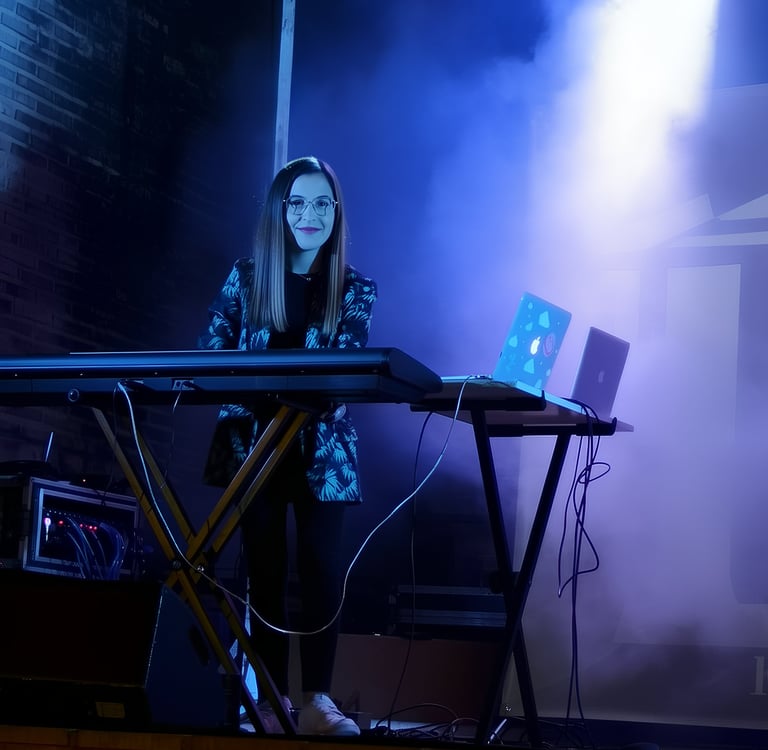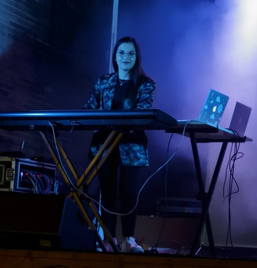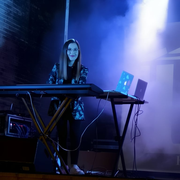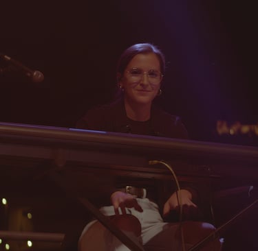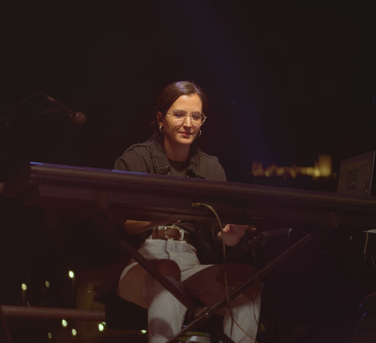 OCTAVA AVENIDA ha sido su primer y único grupo, una circunstancia que no ha limitado su crecimiento, sino que ha potenciado una implicación total con el proyecto. Su entrada en la banda se produce en un momento especialmente exigente: en plena gira, tras la marcha repentina del anterior teclista. En apenas menos de una semana, Cristina se prepara 12 temas, aprendiendo el repertorio a contrarreloj y asumiendo el reto con una solvencia que sorprende al resto de la banda.