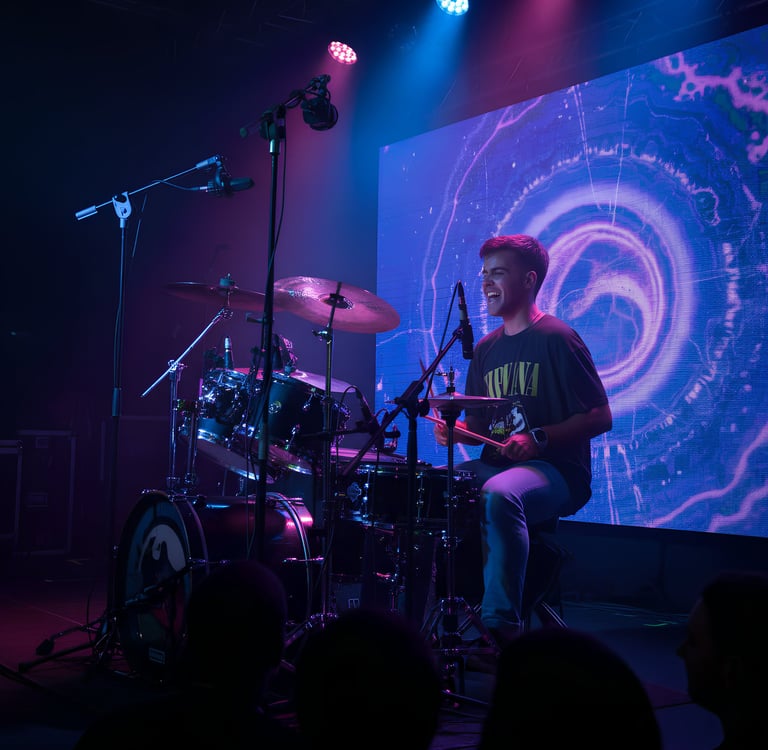 La historia de Fabio Rivas es la de un músico que comenzó a golpear tambores casi antes de saber leer, que ha crecido entre ensayos, escenarios y festivales, y que hoy forma parte de OCTAVA AVENIDA aportando juventud, constancia y una pasión por la batería que le acompaña desde la infancia.